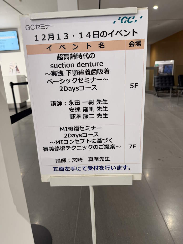 12月13,14日は下顎総義歯吸着セミナーを受講しに御茶ノ水の株式会社GCへ行ってまいりました。